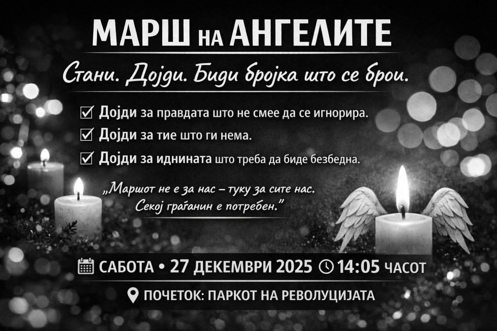 Те повикуваме да ни се приклучиш на следниот „Марш на ангелите“ – мирен, достоинствен и јасен.
